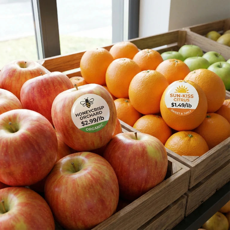 Enhance your products and inform customers with custom retail stickers! Perfect for fruits, produce, and packaged goods, our durable, high-quality stickers are designed for direct application on merchandise. Use them for branding, pricing, promotions, or essential product information. These food-safe and long-lasting decals help your items stand out and provide clear communication in any retail setting.