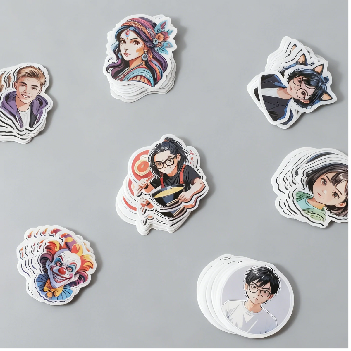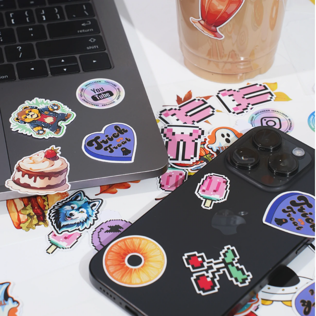 Break free from standard shapes with precision die-cut stickers tailored to your vision— logos, icons, or abstract art. Our Pantone-matched CMYK inks and UV-resistant coatings ensure colors stay vibrant indoors or outdoors, from metallic gold accents to neon gradients.