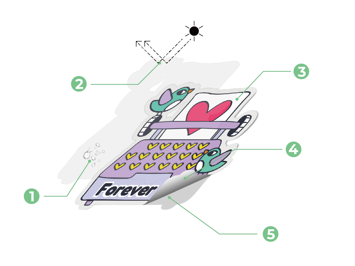 After approval, stickers are professionally printed, laminated, precisely cut, and quality checked.