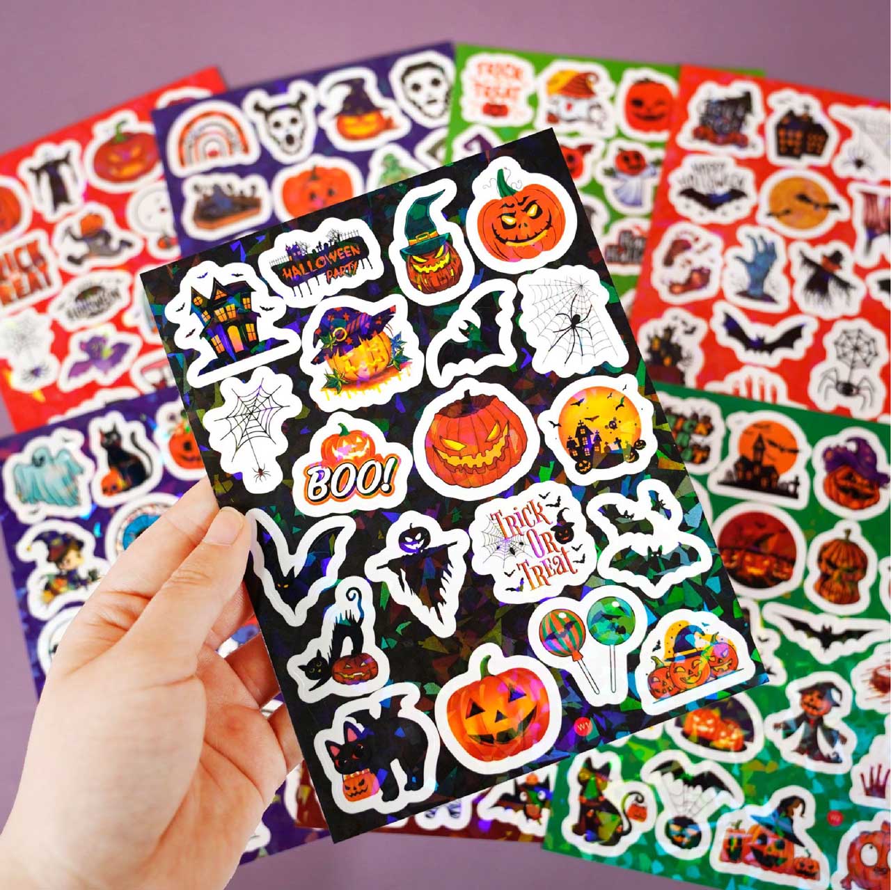 Add a magical shine to Halloween with these holographic stickers! Easy to peel and durable, perfect for party decor, trick-or-treat bags, DIY crafts, scrapbooks, and gift wrapping. Fun for kids and adults to add festive Halloween charm.