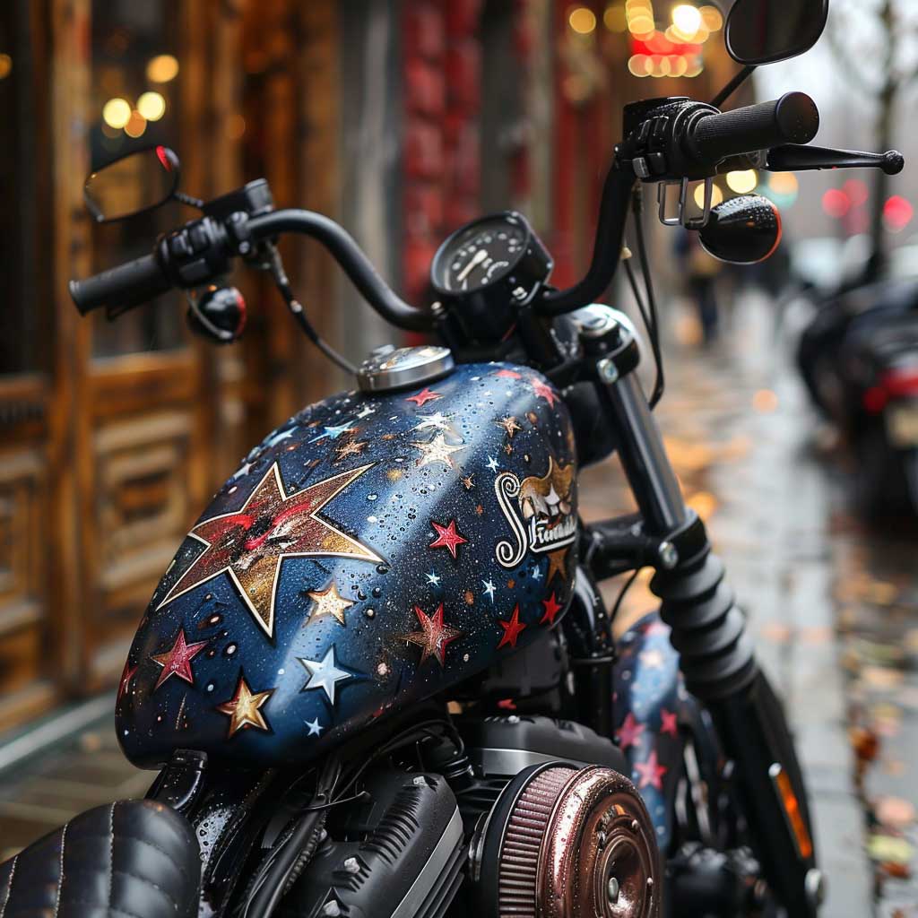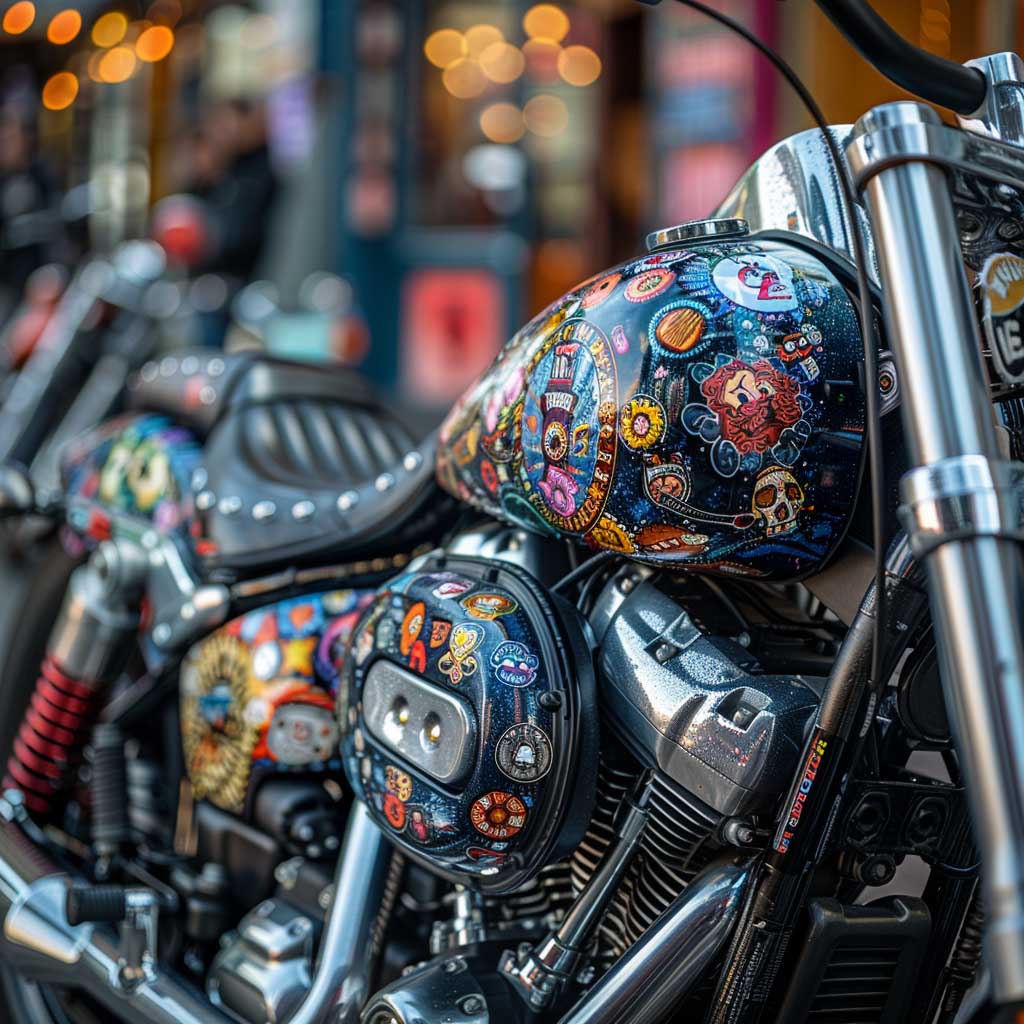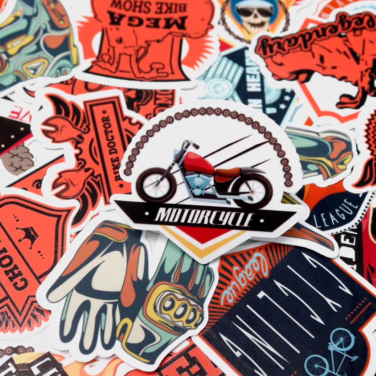 Motorcycle stickers are decorative or expressive decals designed for motorcycles, often featuring themes like brands, logos, graphics, or personal slogans. They not only adorn the bike's body, fuel tank, or helmet but also can reflect the rider's personality or interests.