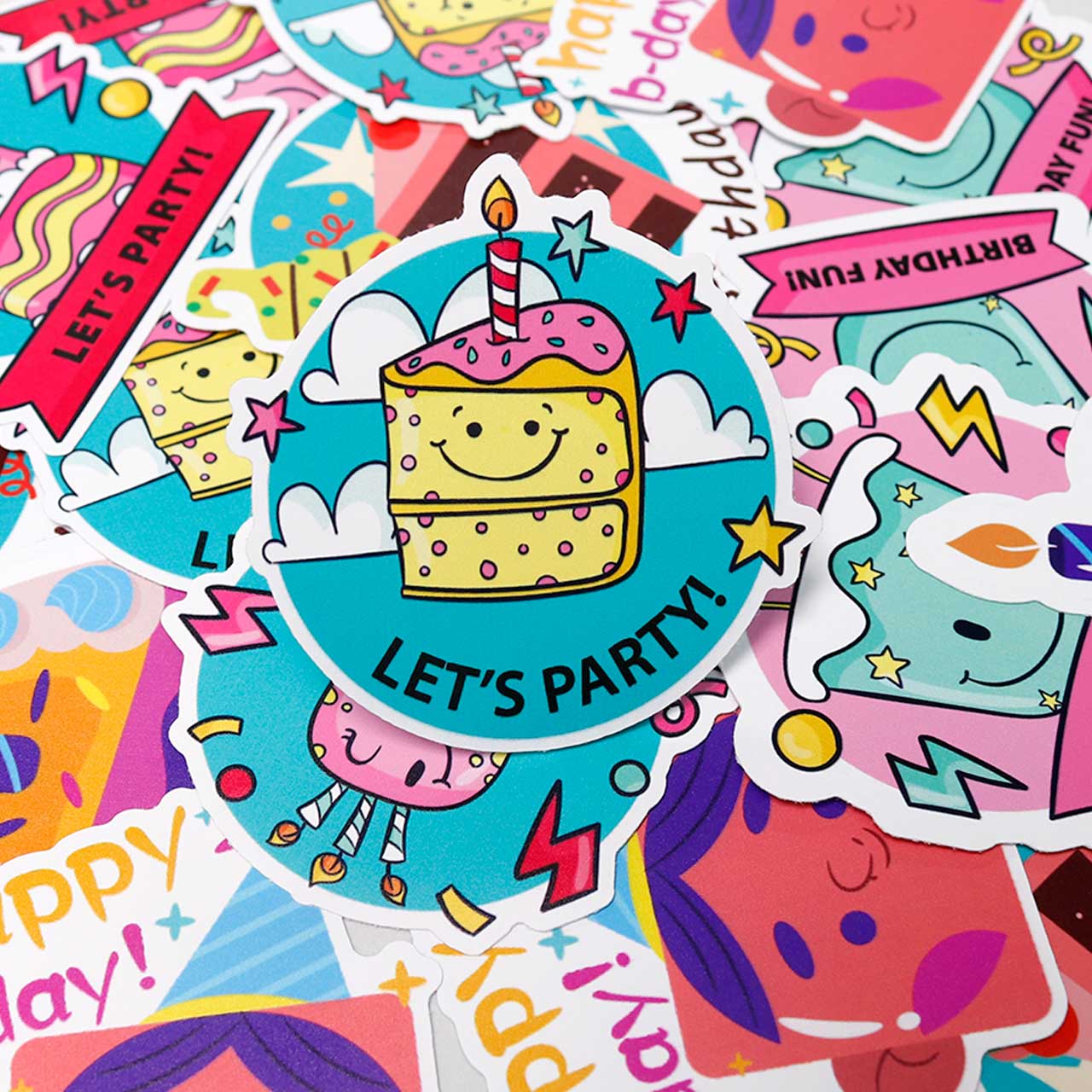 Make your celebrations unforgettable with custom party and festival stickers! Perfect for birthdays, holidays, music festivals, or any joyous gathering, our personalized decals add a unique and vibrant touch. Use them for party favors, decorating, unique invitations, or to brand your event. Our durable, eye-catching stickers ensure your party or festival stands out and leaves a lasting impression.